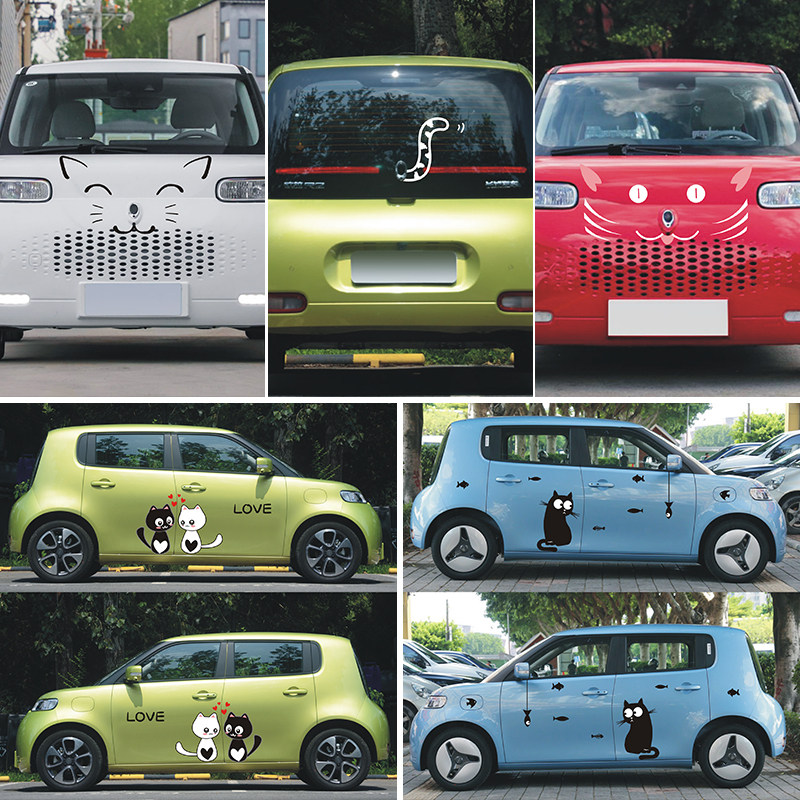 欧拉白猫R2车门可爱卡通玛丽猫动漫车贴汽车划痕遮档装饰贴纸拉花热门设计联盟服务商