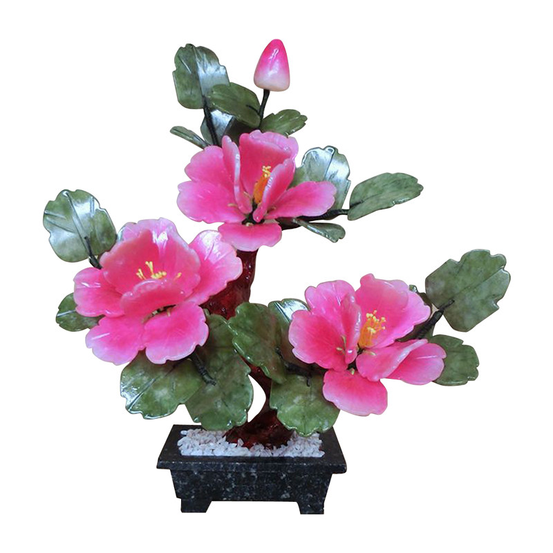 玉石盆景3朵牡丹花客厅办公室酒柜电视柜摆件家居装饰品送礼礼品热门设计联盟服务商