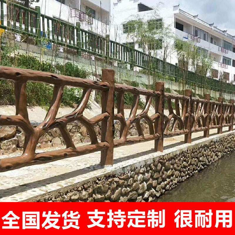 市政栅栏鱼塘水泥扶手仿木护栏河道景观户外栏杆围栏道路防护栏热门设计联盟服务商