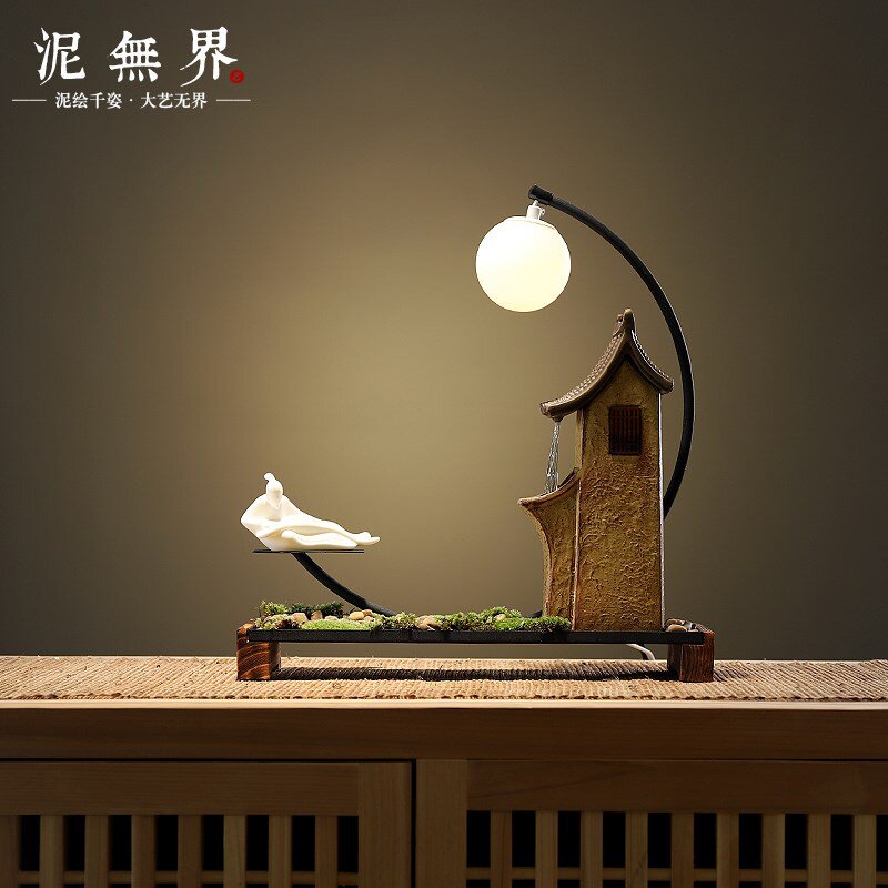 水流转动新中式创意陶瓷流水加湿客厅摆件玄关微景观禅意家热门设计联盟服务商