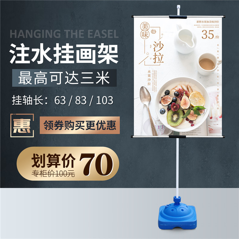3米升降可调注水挂画架展板KT板支架便携广告架展示架x展架海报。热门设计联盟服务商