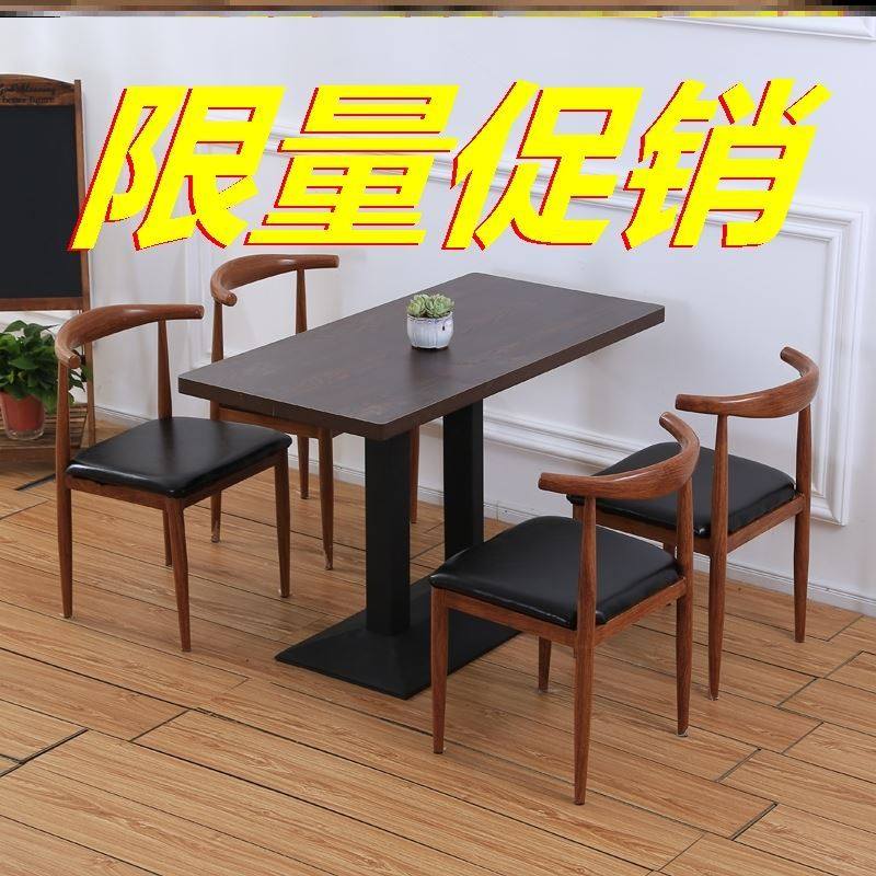 饭店桌椅组合商用甜品店快餐店餐饮家具经济型食堂小吃店牛角椅热门设计联盟服务商