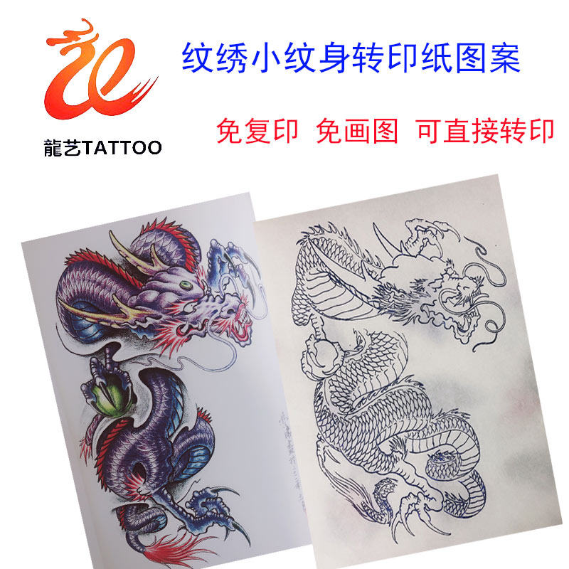 半甲半臂转印纸纹身图案男小臂后背大腿老虎龙鲤鱼大图刺青模板贴热门设计联盟服务商